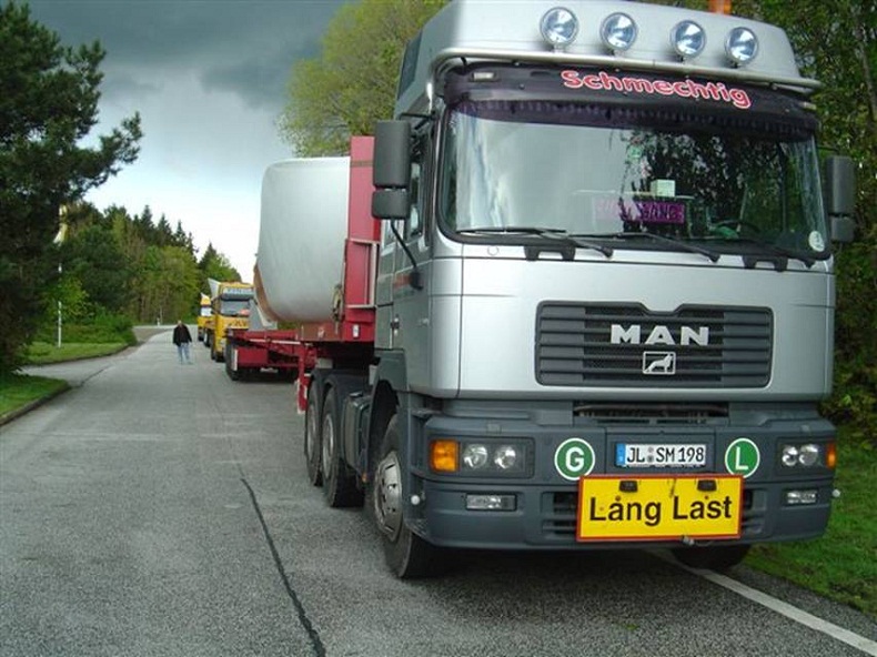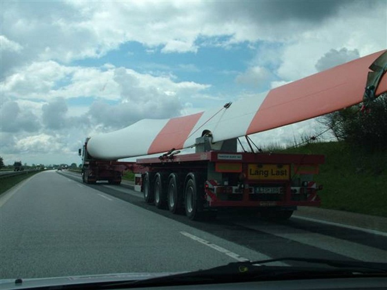 On one of the many miles we covered on the Autobahns, we passed these 3 long trucks carrying what must have been propellers for a wind generator… one per truck.