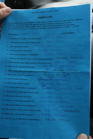 The boat leg was slightly tortuous this year, with a list of two part anagrams, where the first word was an anagram of the second word. i.e. What is the Bordeaux Wine Monopoly? Answer; CLARET CARTEL.