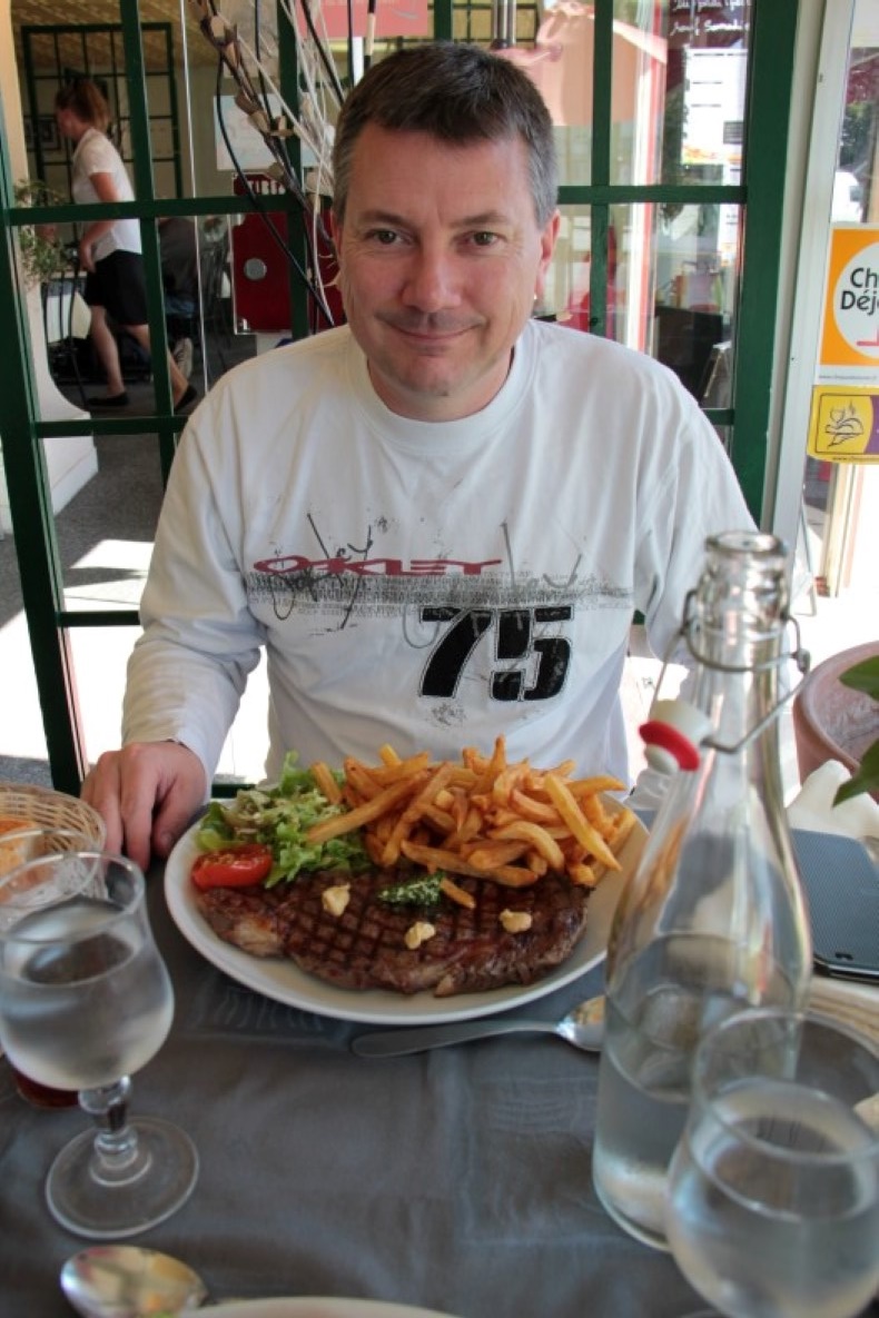 After we had discovered it was better at taking creases out of our clothes, we put on our (semi) smart glad rags, and headed downstairs to get a taxi to our Michelin starred restuarant called Lucas Carton just around the corner. €27 of 'around the corner' - which we still owe Karl for!