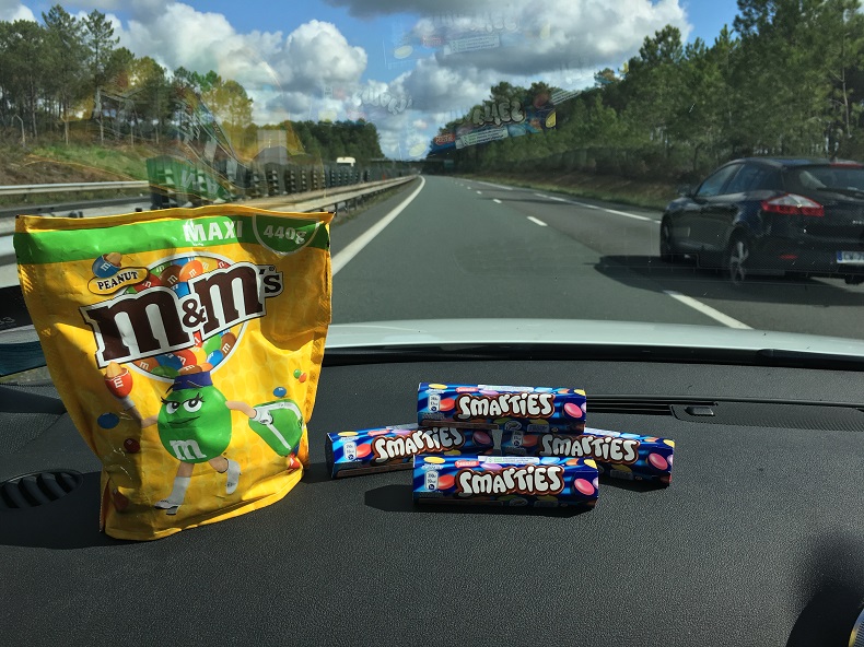 This helped keep us amused (although that was mainly because it was just funny watching Mike try to catch the smarties everytime I 'accidentally' knocked the throttle pedal..).